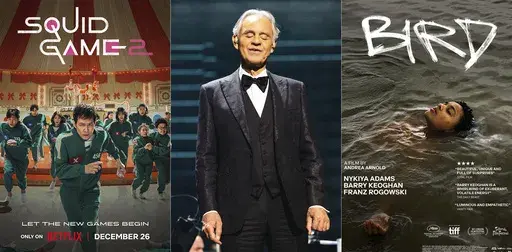 The long-awaited second season of “Squid Game” on Netflix and singing superstar Andrea Bocelli’s Christmas TV special are some of the new television, films and music headed to a device near you.