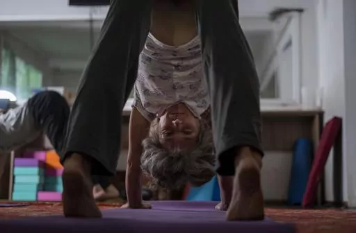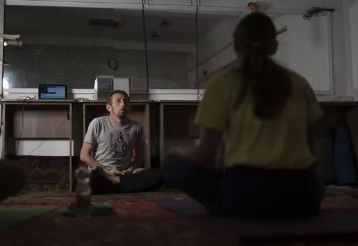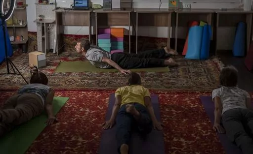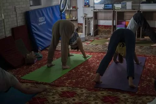 KRAMATORSK, Ukraine (AP) — In a basement in one of the front-line cities in Ukraine's Donetsk region, people gather three times a week in the morning for yoga to alleviate the stress caused by the constant shelling from Russian artillery.